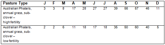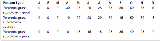 Source: South Australia PROGRAZE manual, Appendix D (for further information and the assumptions on which these tables are based), see the South Australian PROGRAZE manual and the Feed Demand Calculator or visit www.pir.sa.gov.au).