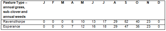 Source: Western Australia PROGRAZE manual, Appendix E (for further information and the assumptions on which these tables are based), see the Western Australian PROGRAZE manual or visit www.agric.wa.gov.au).